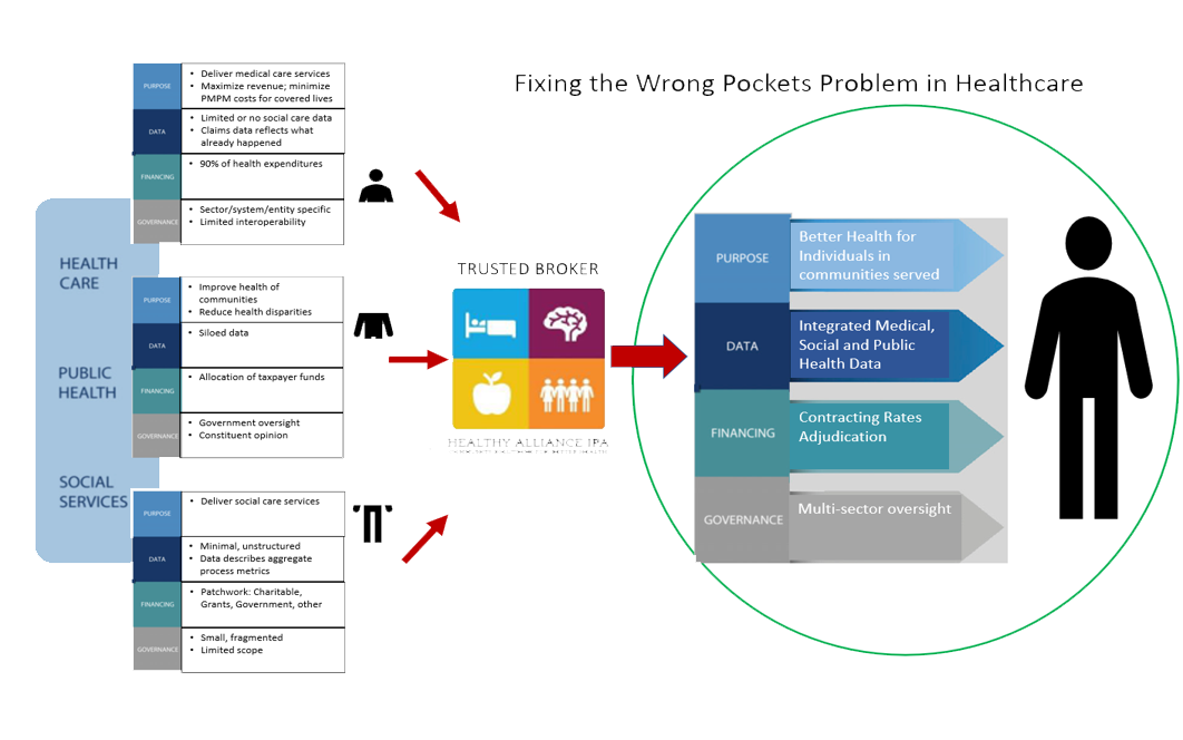 Conceptual Model for how Healthy Alliance works to fix the Wrong Pockets Problem.
